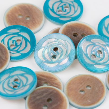 Bouton nacré fleur gravée 2 trous
