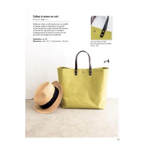 Ils se confectionnent sans patrons, il vous suffira de reporter sur la toile les mesures indiquées dans chacun des tutoriels. A cela, s’ajoutent de nombreux accessoires aux fermetures zippées avec des explications en pas à pas vous assurant une technique de pose absolument parfaite.