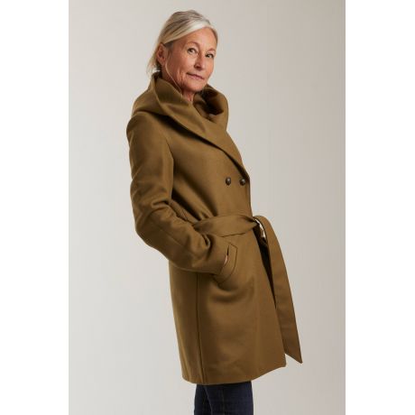 Sa coupe croisée, sa grande capuche oversize et sa ceinture à nouer lui confèrent une silhouette enveloppante et féminine, parfaite pour les journées froides. Ses détails soignés — capuche généreuse, double boutonnage, poches passepoilées et longueur mi-cuisse — apportent une touche d’élégance tout en garantissant un confort absolu.