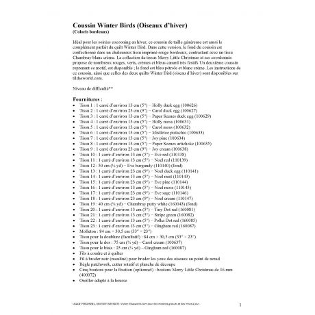Idéal pour les soirées cocooning en hiver, ce coussin de taille généreuse est aussi le complément parfait du quilt Winter Bird.