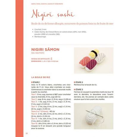 Outre les incontournables délices japonaises, Laurène Rein de l'Univers de Lalu a créé des modèles inédits, moins connus des fans de crochet, et pourtant incontournables pour tous les passionnés de cuisine japonaise.