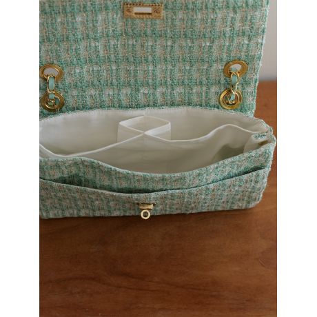 Edgar de Ancea Paris est le sac classique chic par excellence. Une forme rectangulaire avec un rabat arrondi, un joli fermoir bijou rotatif et une chaîne doublée qui permet de le porter à l’épaule, à la main, ou en bandoulières. Le sac est doublé et comprend une poche plaquée devant, sous le rabat et deux poches intérieures dos.