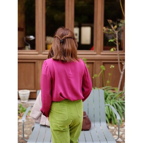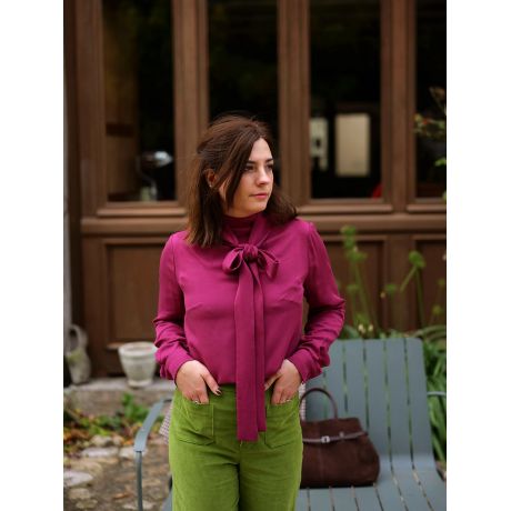 On pourra la coudre dans des matières fluides mais aussi douillettes comme la flanelle ou le velours ras pour être bien au chaud, avec style. Conseil look : A porter blousée dans un bas taille haute.