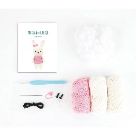 Les créatifs avec un niveau intermédiaire adoreront donner vie à ce petit dessin de Martha le lapin. Le kit contient tout ce dont vous avez besoin pour réaliser votre amigurumi, y compris du fil 100% Coton , un crochet, des accessoires, du rembourrage et des instructions.