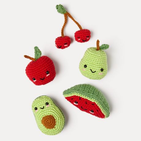 Créez des amigurumis fruités avec le Kit Crochet "Nos Amis les Fruits" de DMC. Conçu par Nuria Picos, ce kit DMC contient le fil Happy Cotton, un fil 100% coton de haute qualité. Une fois votre projet crocheté, ajoutez les détails avec les yeux de sécurité fournis, le Mouliné Spécial et le fil Retors mat.