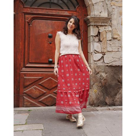 Rose Mary de Lise Tailor est une jupe longue et aérienne qui séduit par son charme intemporel. Sa coupe