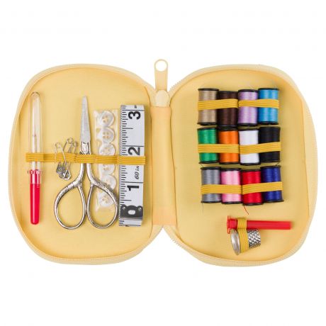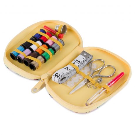 Pochette couture garnie d'accessoires couture