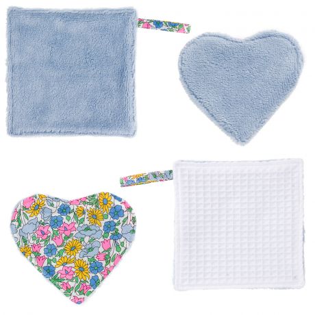 Kit lingettes cœur, filet et grand carré Amélie en Liberty - Com'1 Idée
