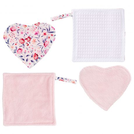 • 4 lingettes en forme de cœur : une face en éponge microfibre ultra
