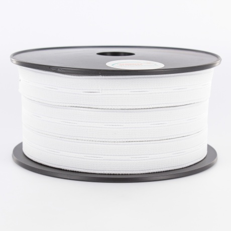 L’élastique boutonnière est un élastique qui a des petites ouvertures régulières tout le long (comme des boutonnières).