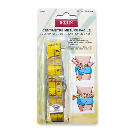 Ce modèle est spécialement conçu pour prendre ses mensurations de manière précise. L'outil comprend une bague en plastique permettant de faire coulisser le ruban à l'intérieur de la bague pour obtenir une lecture précise de toutes les mensurations. Ce ruban mesure taille est idéal pour mesurer le tour de taille, le tour de poitrine ou encore le tour de hanche. Grâce à la glissière, un système de blocage indiquera la taille mesurée sans avoir besoin de maintenir le mètre dans les mains. Le ruban reste noué autour de la partie du corps que l'on souhaite mesurer.
